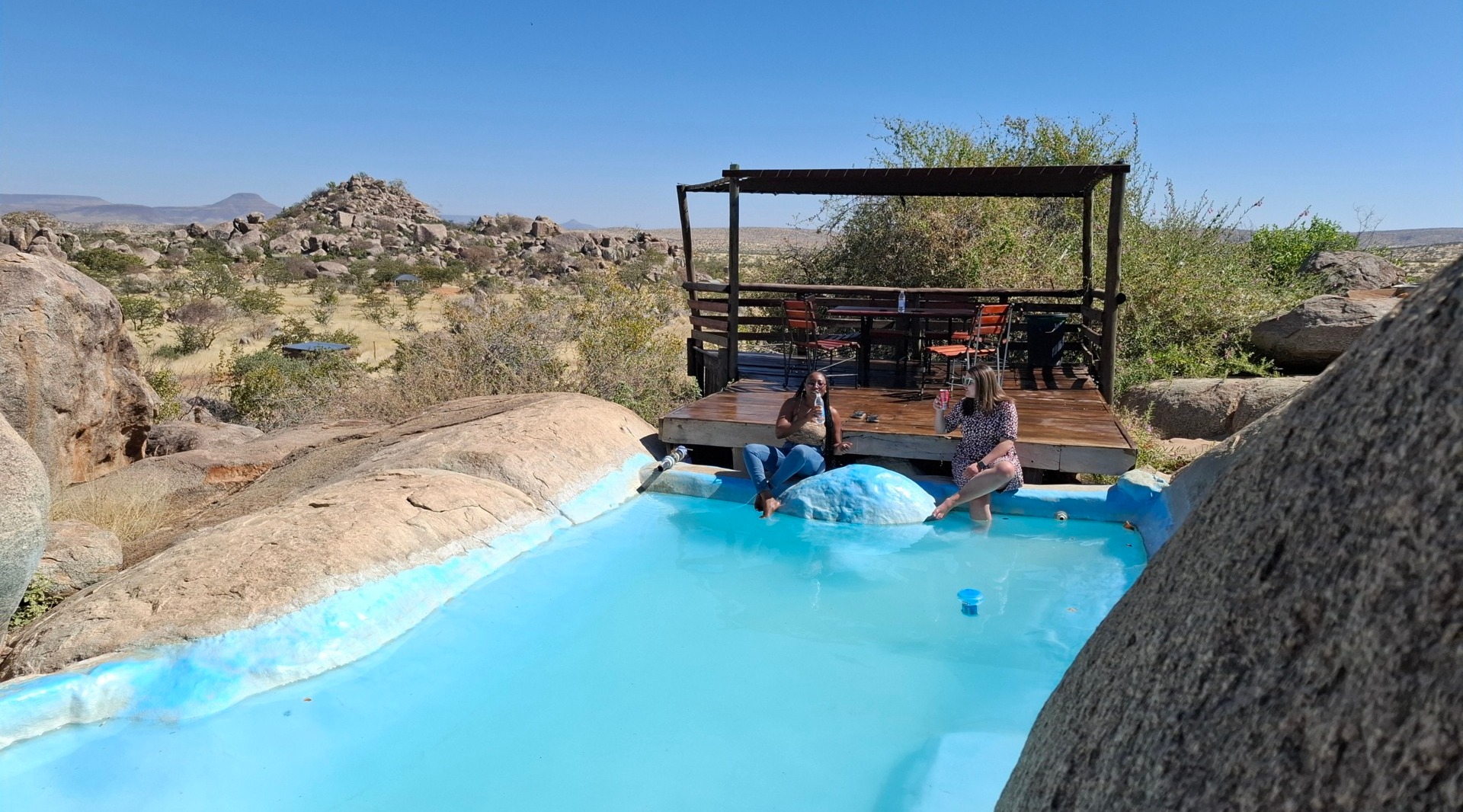 Der Hoada Campingplatz ist der perfekte Zwischenstopp, um die nordwestlichen Regionen Namibias zu erkunden. Die Gegend beherbergt eine große Vielfalt an Flora, Fauna und geologischen Wundern. Schöne, private Campingplätze mit seinem berühmten Felsenpool und Bar. Erleben Sie stilvolles Wildcampen auf dem Hoada Campingplatz und nehmen Sie auch an einem geführten Spaziergang teil, um mehr über das Farmlandleben der Damara zu erfahren.