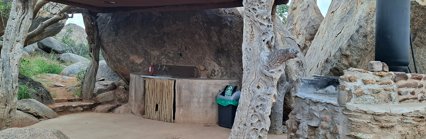 Jeder Campingplatz ist mit einem Küchenbereich ausgestattet, der ein Waschbecken und fließendes Wasser beinhaltet, während der Grillbereich auch als Warmwasserbereiter dient und heißes Wasser für die Waschgelegenheiten bereitstellt, während Sie Ihre Mahlzeiten zubereiten. Das Vorhandensein großer Granitfelsen bietet Schutz vor Wind und schafft natürliche Abtrennungen zwischen den Campingplätzen, was zur malerischen Umgebung Ihres Aufenthalts beiträgt.
