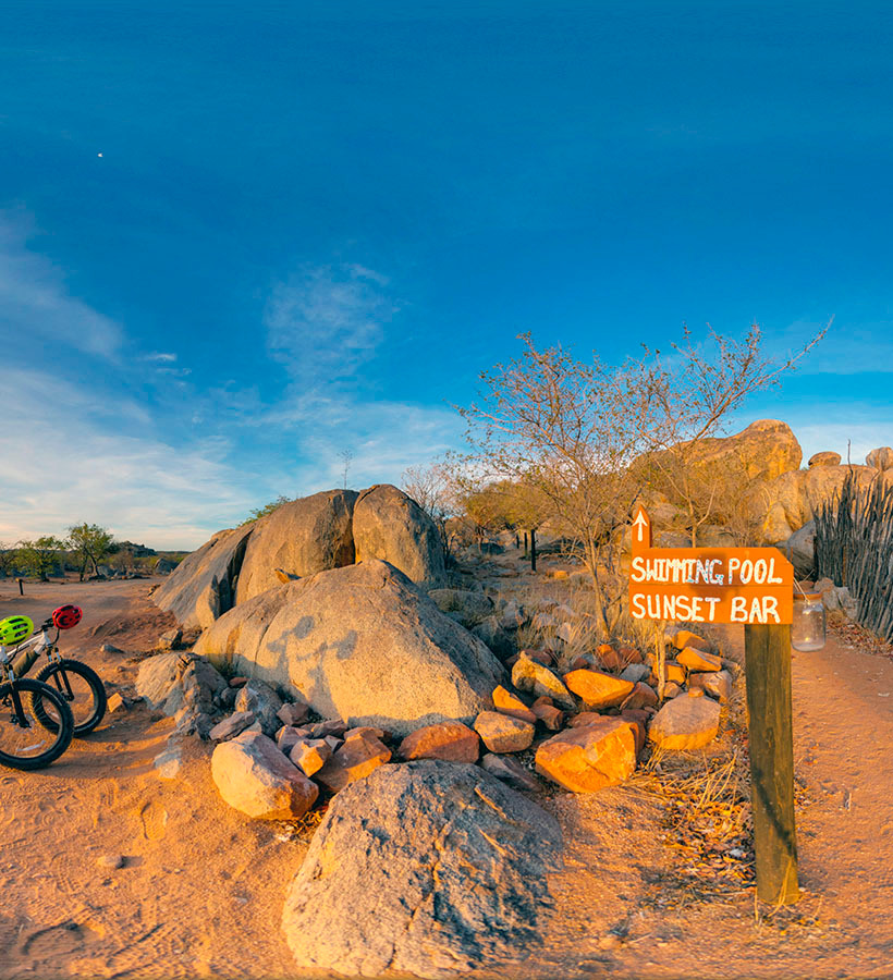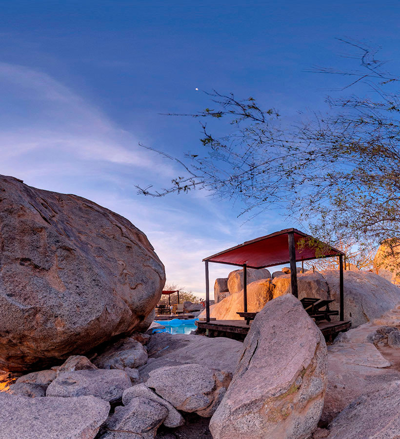 Hoada Campsite is the perfect stopover for exploring the north-western reaches of Namibia. The area is home to a large variety of flora, wildlife and geological wonders. Beautiful, private campsites with its famous rock pool and bar. Rough it out in style at Hoada Campsite and also join a guided walk to learn about Damara Farmlife.
